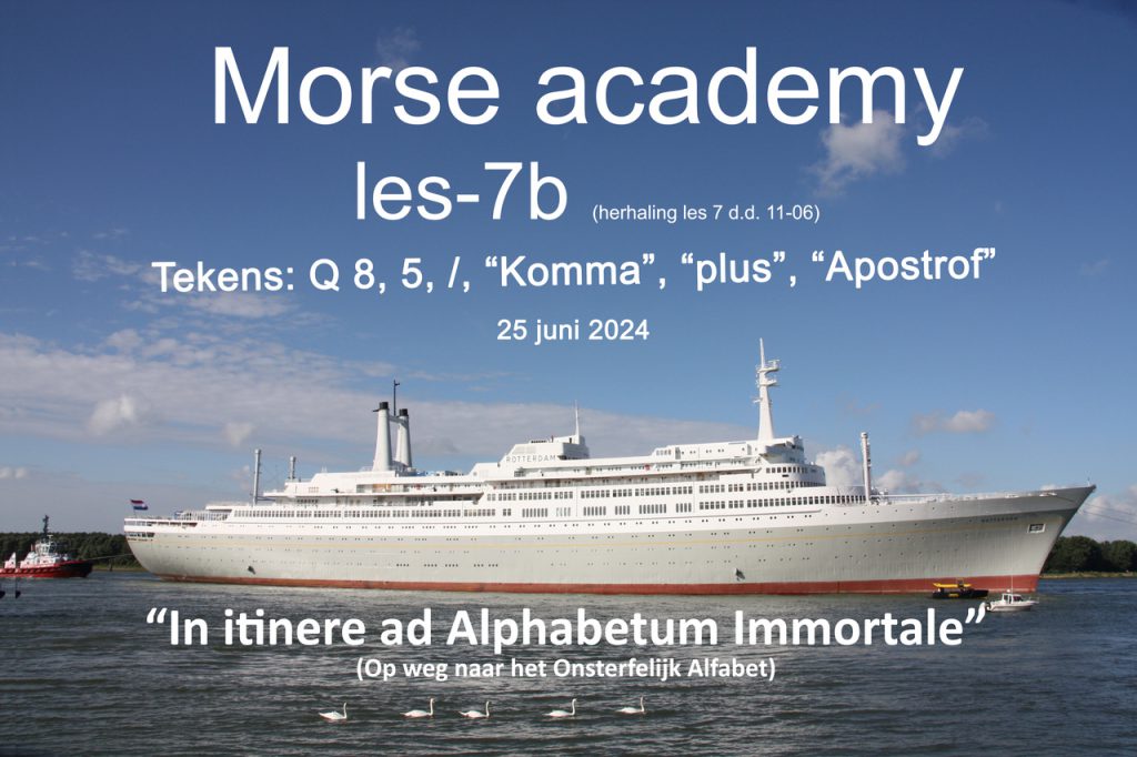 25/06/2024 / Laatst geüpdatet : 25/06/2024 PI4HAL Morse Academy Morse Academy les 7b (25-6-2024) Luister hier de morse les van Hans, PA3GXB terug van 25 juni 2024